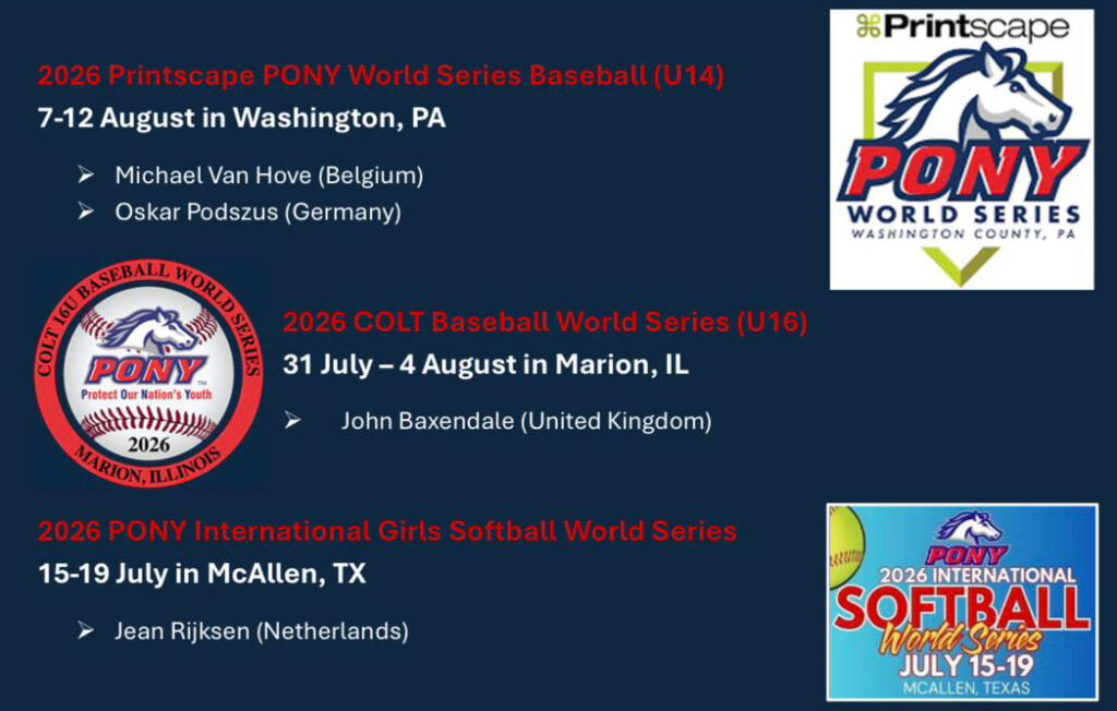 Eine besondere Auszeichnung: Oskar Podszus, der für unseren Verein lange als Umpire Obmann fungierte, wurde für die Pony World Series 2026 nominiert. Wir gratulieren ihm dazu herzlich!